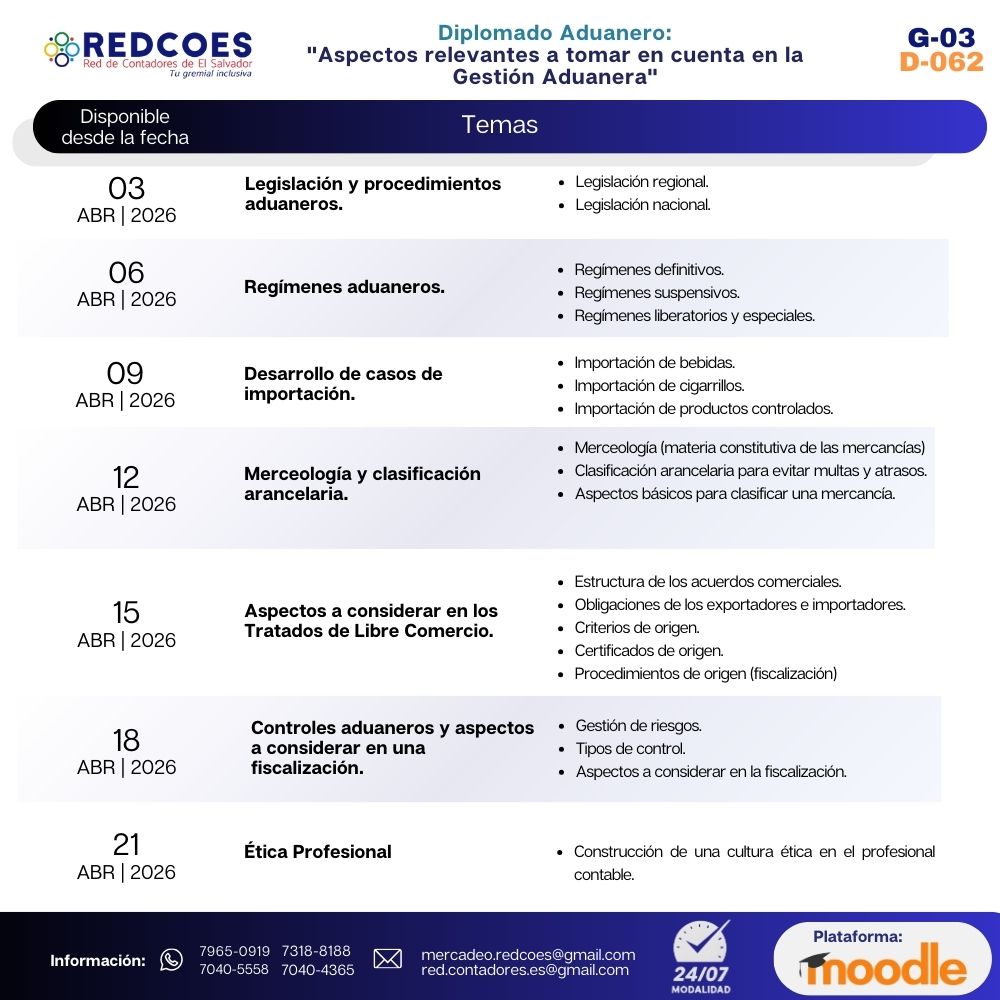 079-2026 | Diplomado Aduanero Aspectos relevantes a tomar en cuenta en la Gestión Aduanera G.3